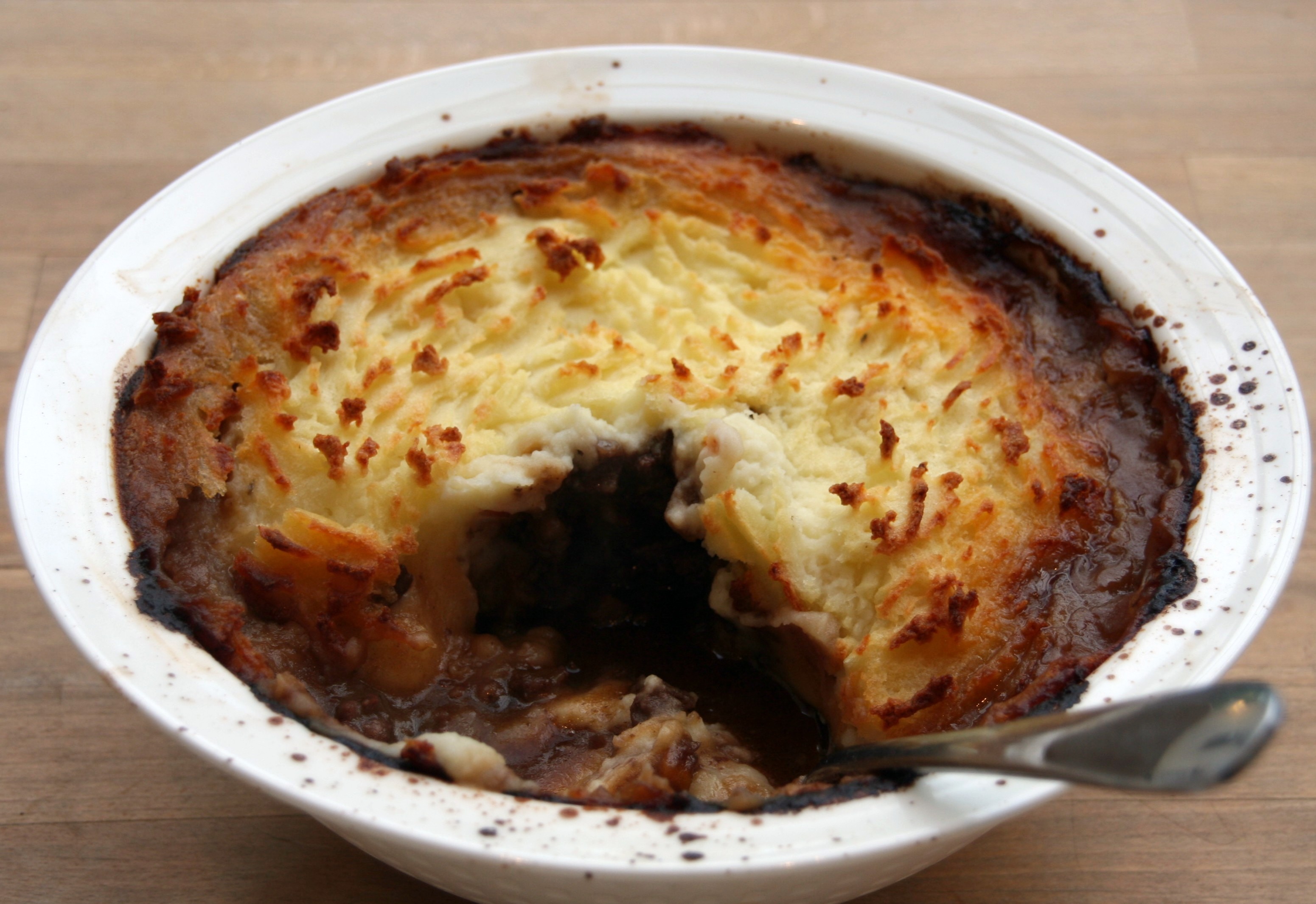 To assemble, spoon the meat mixture into a baking dish and spread the potato and leeks on the top, using a fork to rough up the texture.