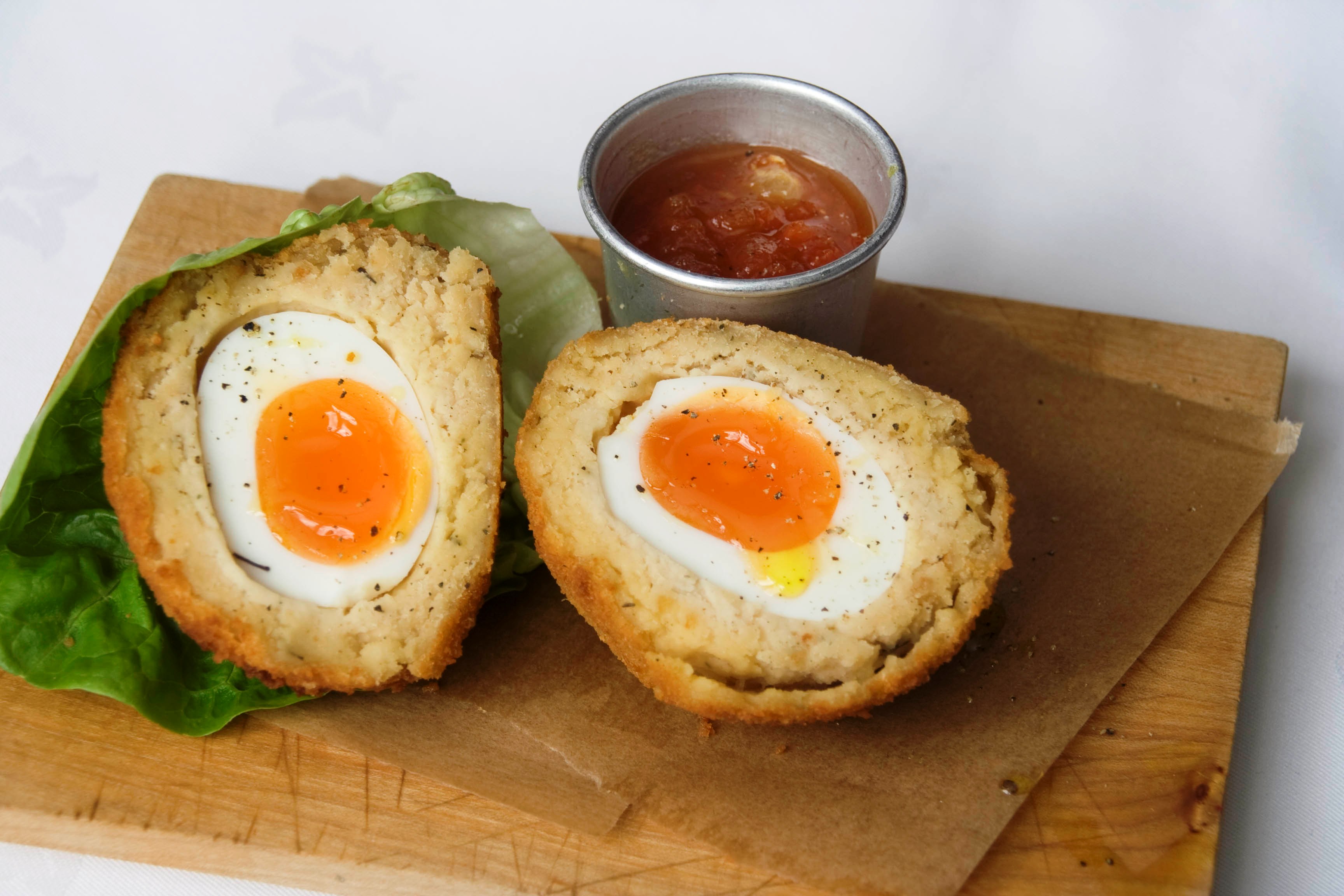 This is a novel twist on the traditional sausage meat-based scotch egg. Not only is it another way to enjoy egg and beans, it means vegetarians can enjoy a scotch egg too.