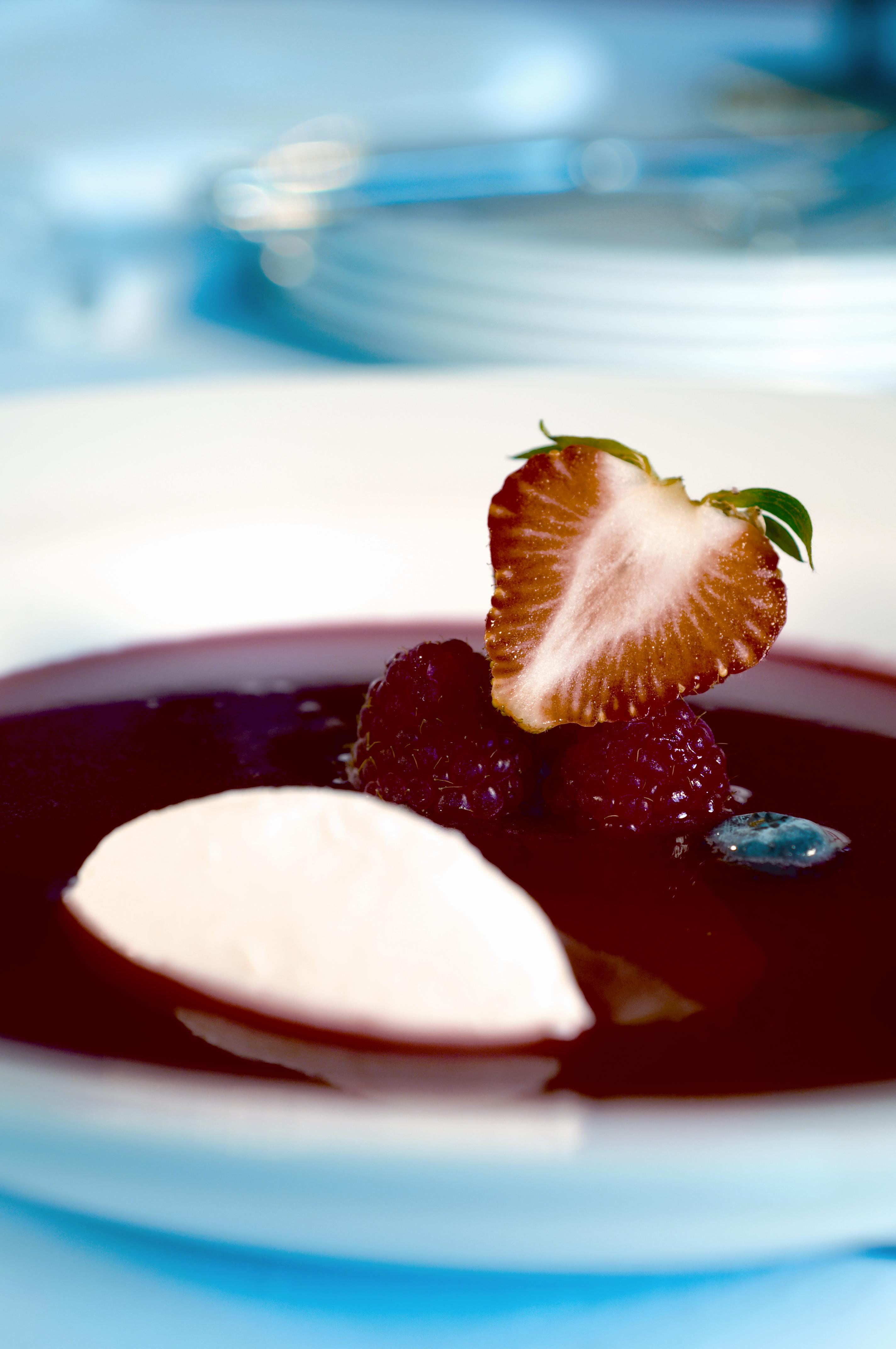 If you’re lucky, like me, to have plum trees in your garden, you’ll occasionally end up with a surfeit to enable you to make this rather unusual dish. Unusual in that it’s a chilled soup as a dessert but it’s a doddle to make. In this recipe we’ve used a vanilla pod. If you can’t get your hands on one, you could use a few drops of vanilla extract but please, don’t use anything called vanilla flavouring. It just won’t have the same effect.